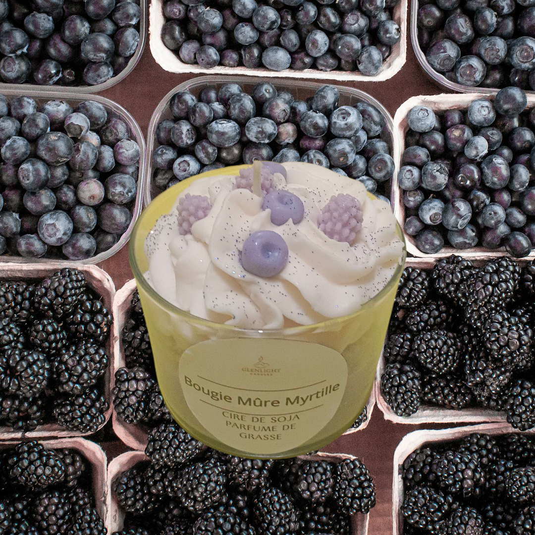 Découvrez nos Bougies gourmande senteur Mure-Myrtille.